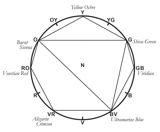 Did you know that there is evidence to indicate that painters have organized their palettes to the color wheel in much the same way that manufacturers of musical instruments design their products to a twelve tone scale? An interesting notion, isn’t it? A palette upon which to perform. A palette designed to change keys and function in different registers. Wouldn’t that make things easy? Have you any reason to believe that a master painter would go out of his way to make anything difficult for himself…that he would not have an organized palette? A palette is a tool/ instrument which should respond, in an orderly way, to the painters demands. Of course, painters have thought through the problem and such an easy and straight-forward method exists…it has, for a long time.