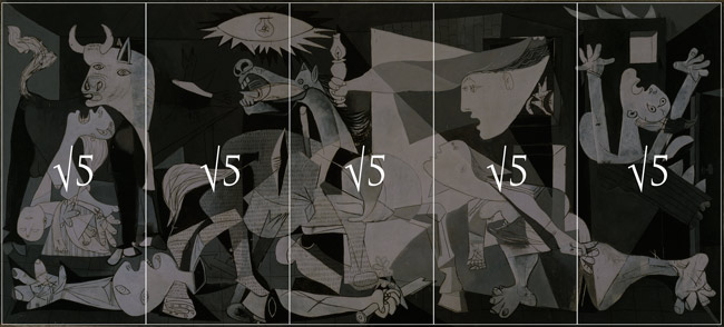 First, let’s just take a look at the size of his painting. It’s HUGE! Guernica is 11ft 5in high by 25ft 6in wide. When we convert those numbers into inches and do a little math we get something very interesting.
