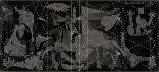Pablo Picasso is well known for his unique and crazy paintings of twisted faces, lopsided eyes, fat cartoonish fingers, and psychotic bulls, but hardly anyone knows of his masterful use of the golden section. Today we take a look at one of his largest, most famous, and dramatic pieces he ever created…”Guernica.” We’ll see how Picasso applied dynamic symmetry to his painting to help organize his masterpiece.