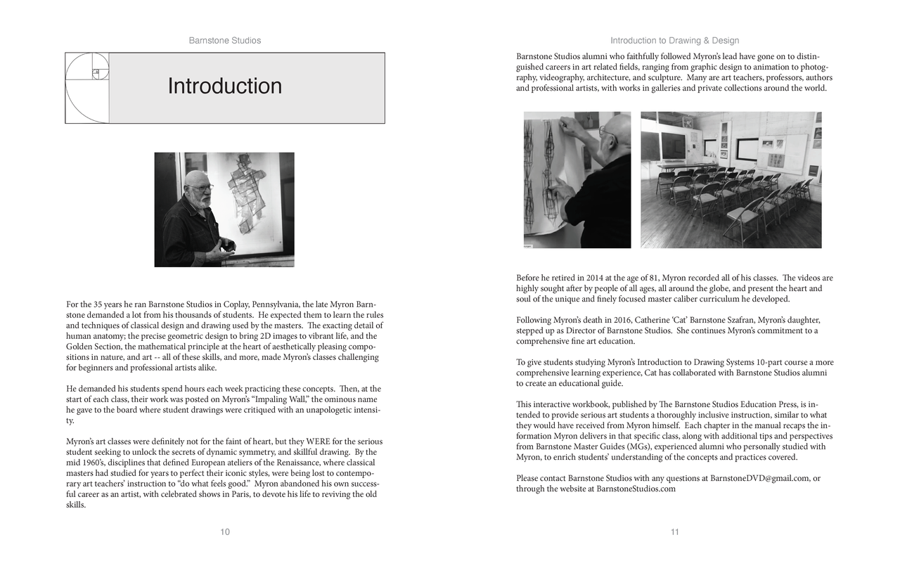 The late Myron Barnstone's Introduction to Drawing and Design course was a demanding master class. Myron insisted students take it at least twice to truly master the skills. His students learned the secret and ancient codes of rhythm and geometry that only a master's initiate could know. Using the Barnstone Method, students discovered how to apply time-honored universal principles to any subject.
